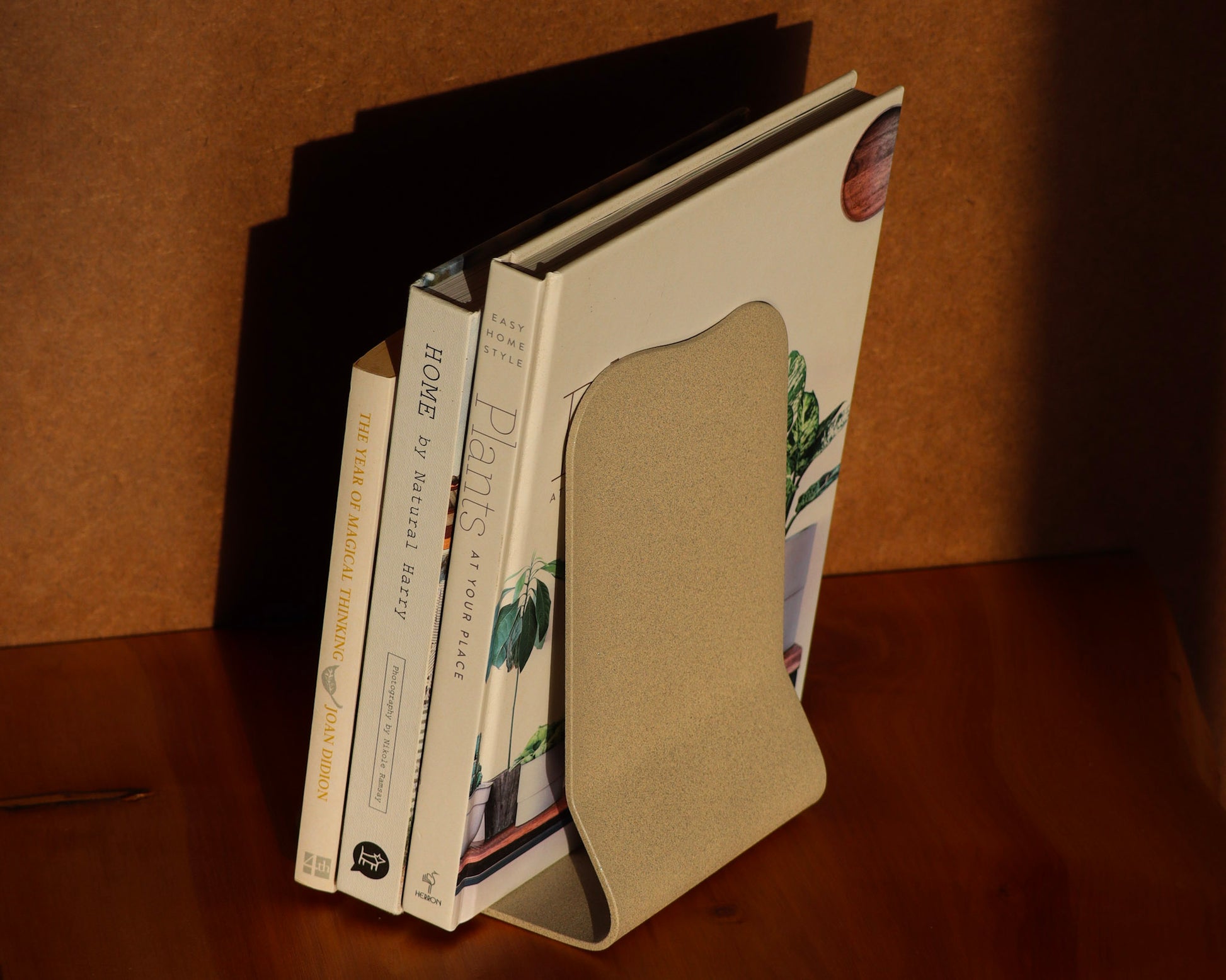 The ELLE Bookend is a sculptural piece that blends clean lines with practical strength.