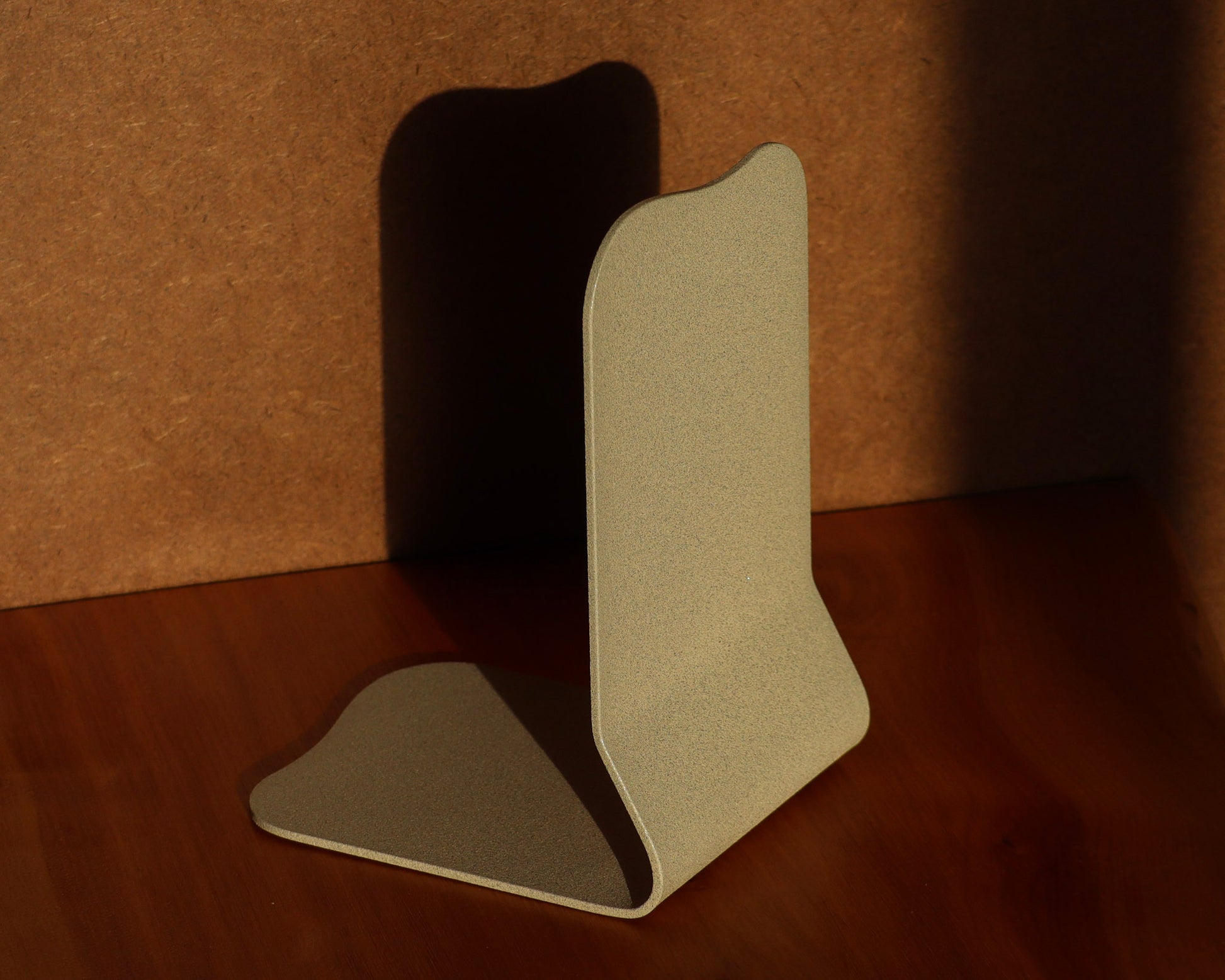 Crafted from 2.5 mm powder-coated aluminium, it supports your books, magazines, or records while adding a modern accent to shelves, desks, or side tables. Its smooth finish and minimal profile make it an elegant detail for any interior.